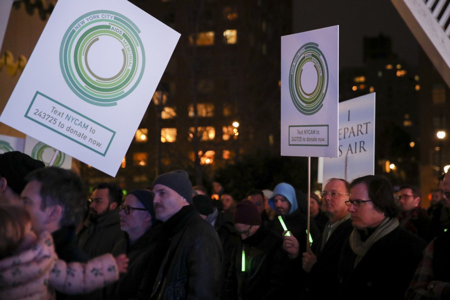 People participate in a World AIDS Day memorial in New York, the United States, Dec. 1, 2018. (Xinhua/Wang Ying)