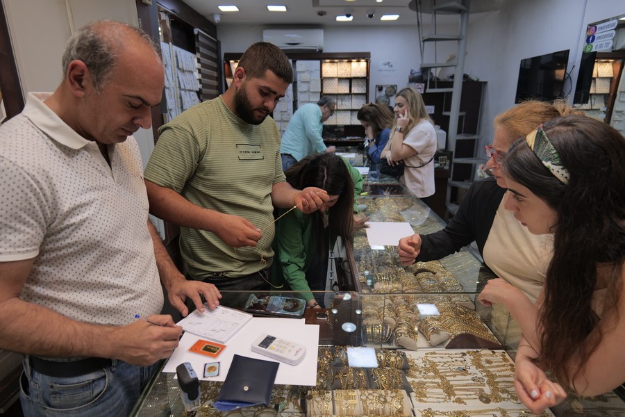 People are buying gold at a jewelry shop in Beirut, Lebanon, on May 27, 2023. (Photo by Dana Halawi/Xinhua)