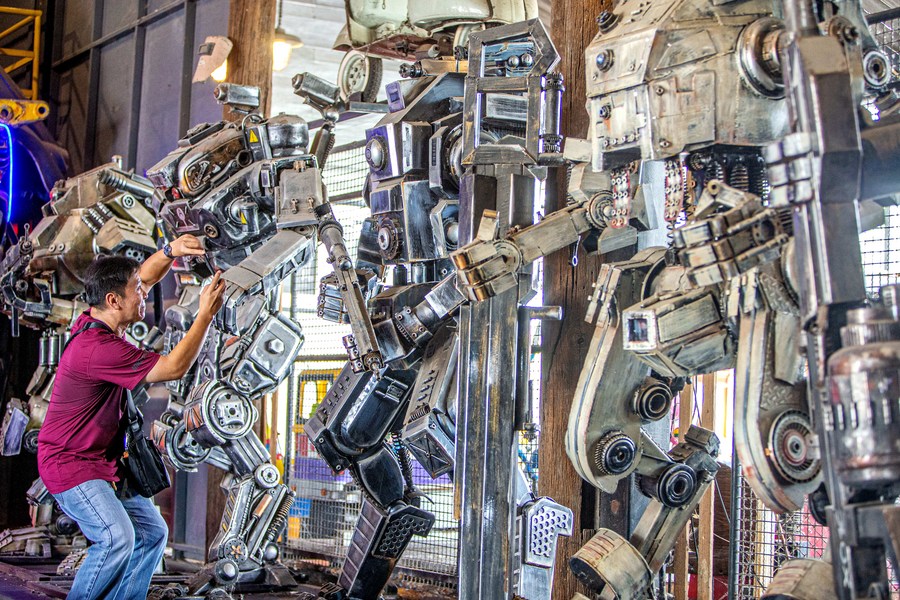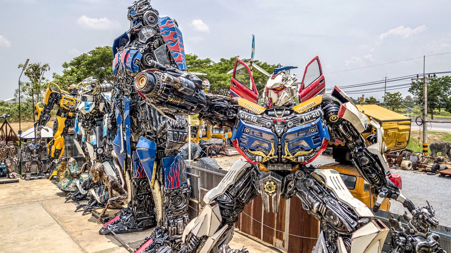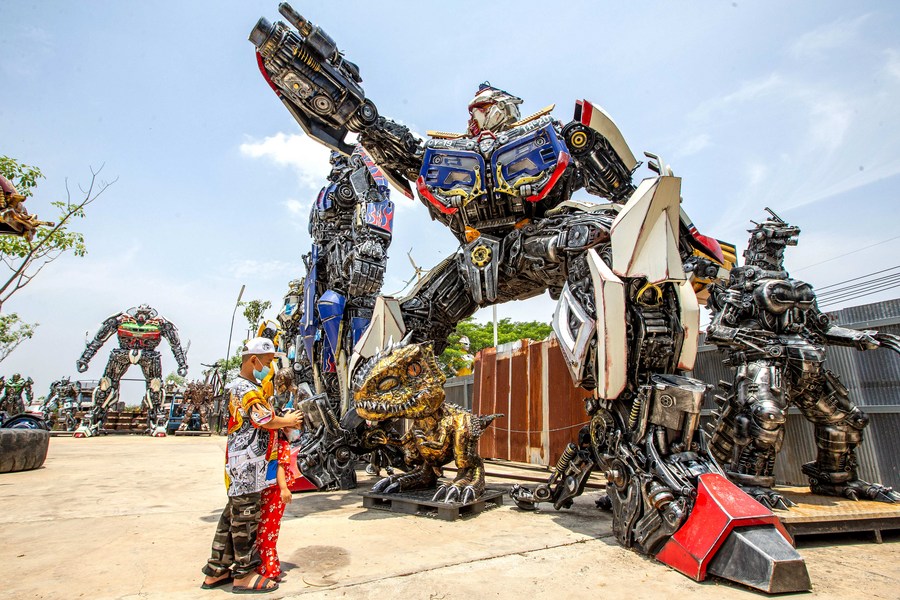This photo taken on May 25, 2023, shows robots made from scrap metal at the Transformer Museum in Ang Thong, Thailand. (Xinhua/Wang Teng)