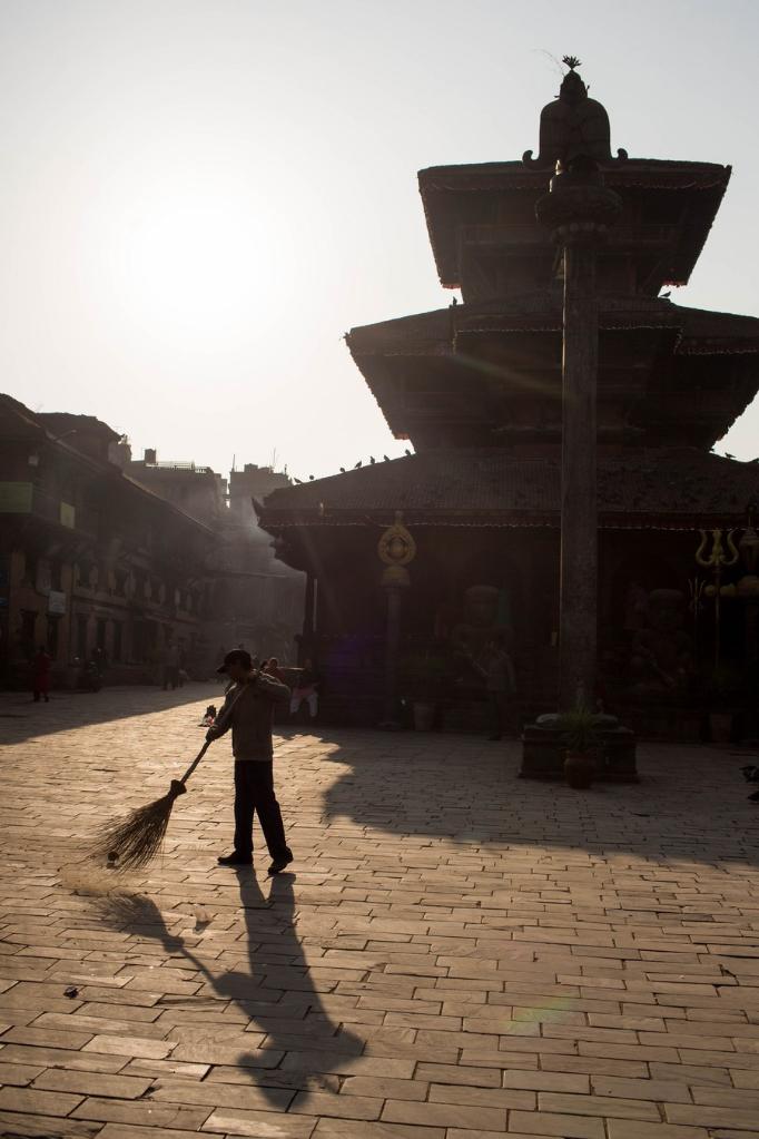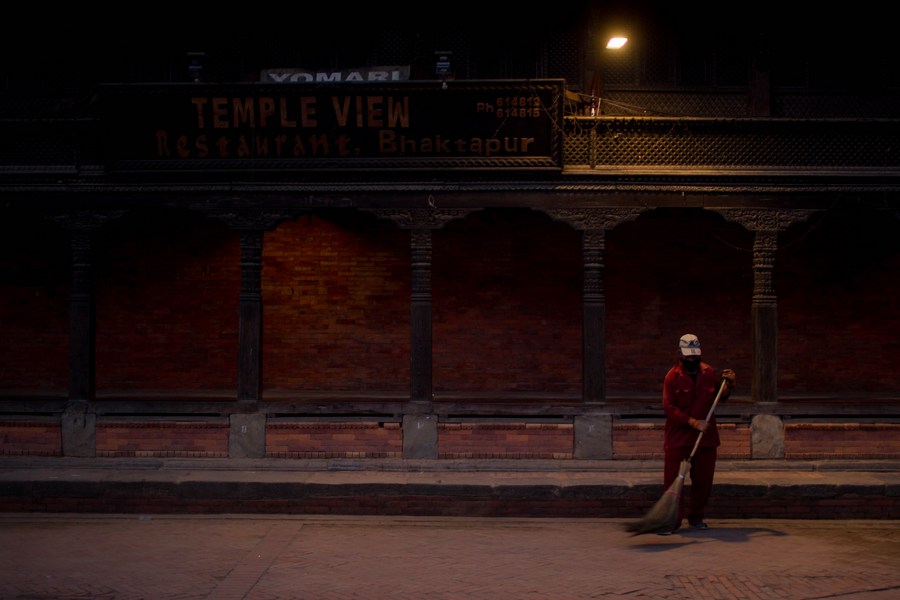 A man is seen doing cleaning on the premises of the Bhaktapur Durbar Square, a UNESCO world heritage site, in Bhaktapur, Nepal on May 30, 2023. (Photo by Sulav Shrestha/Xinhua) ■