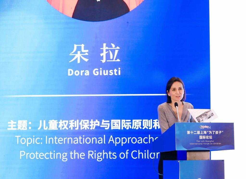 Dora Giusti, chief of Child Protection of UNICEF in China, delivered a keynote speech in Shanghai in October 2021. (Photo by UNICEF)