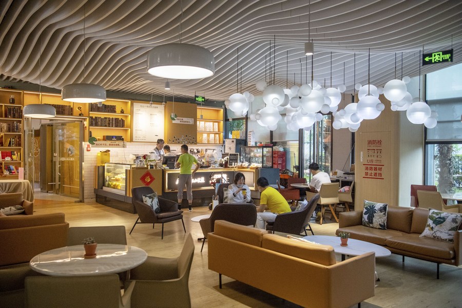 Guests taste coffee at Yijiao Cafe located at Songshan General Hospital, Yubei District of southwest China's Chongqing Municipality, May 21, 2023. (Xinhua/Tang Yi)