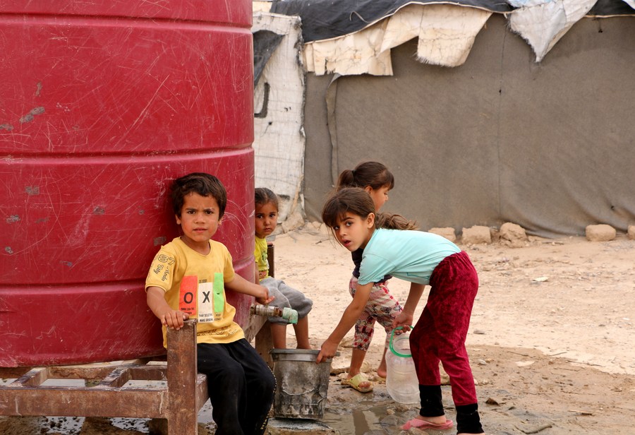 Children are seen at the al-Hol refugee camp in the northeastern province of Hasakah, Syria on May 28, 2023. (Str/Xinhua)