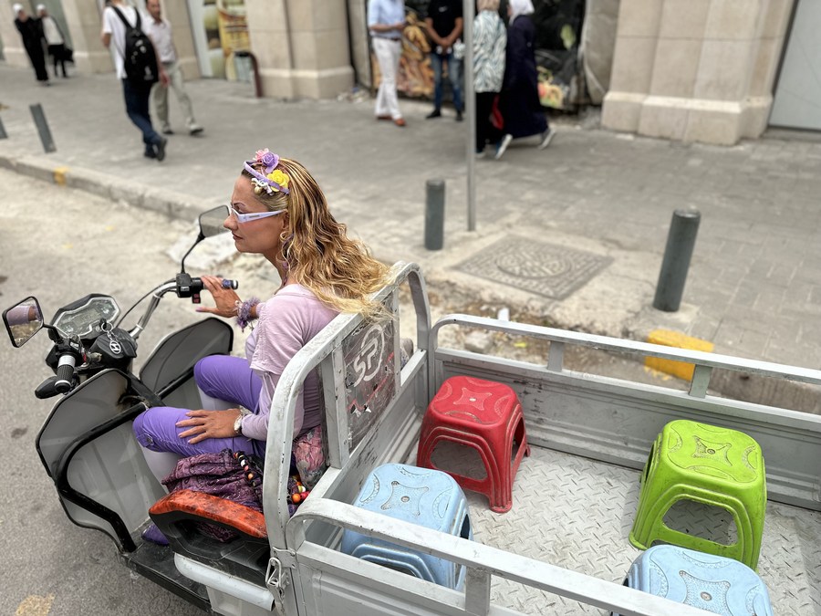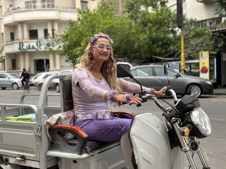 Rasha Hasan, 46, is seen driving a Tuk-Tuk on the streets of the capital Damascus on May 28, 2023. (Photo by Hummam Sheikh Ali/Xinhua)