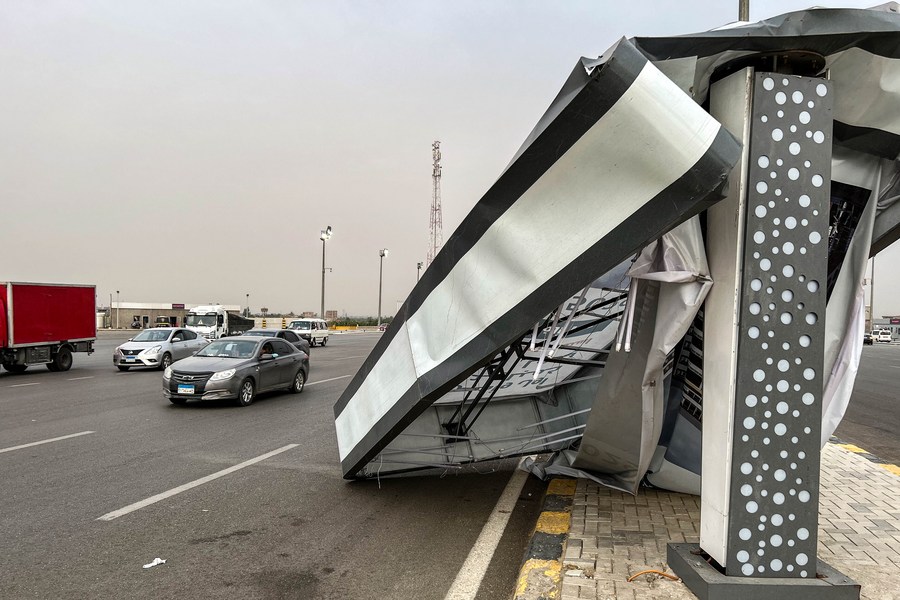 Photo taken on June 1, 2023 shows a collapsed billboard after a massive sandstorm hit Cairo, Egypt. (Xinhua/Ahmed Gomaa)