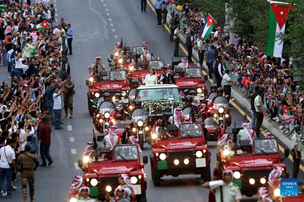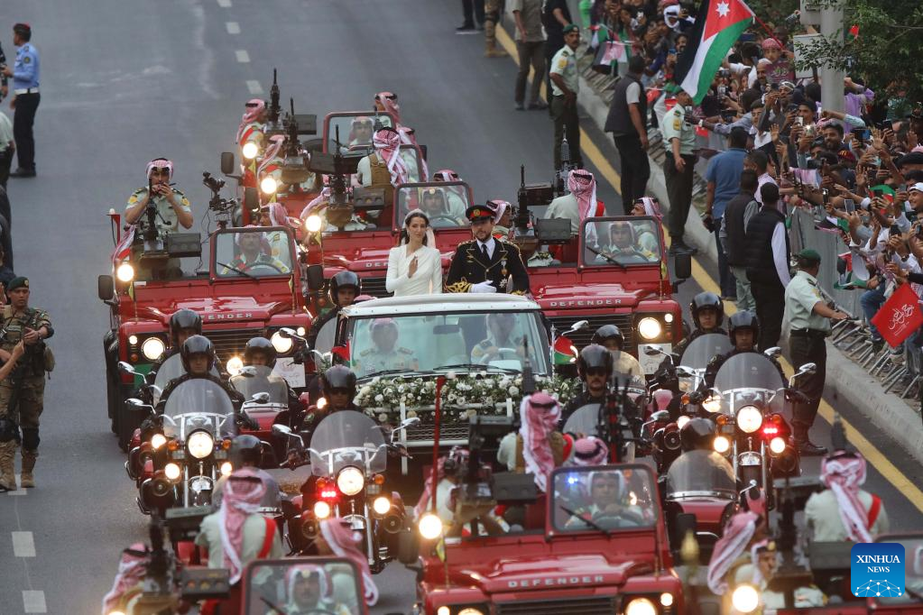 AMMAN, June 1 (Xinhua) -- Jordan's Crown Prince Hussein married Saudi Arabian architect Rajwa Al-Saif on Thursday during a lavish wedding ceremony attended by Arab and foreign dignitaries, the Royal Hashemite Court announced.