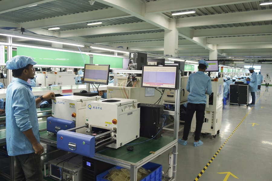 Workers work at the new factory of Transsion Holdings in the Meghna Industrial Economic Zone, Narayanganj, Bangladesh on May 24, 2023. (Xinhua)