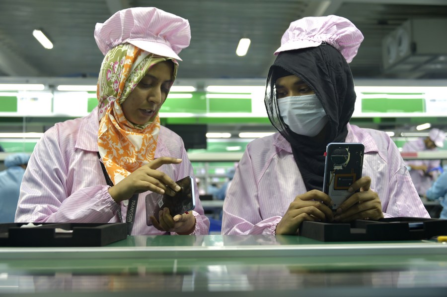 Female workers work on an assembly line in Transsion's new manufacturing plant in Narayanganj, Bangladesh on May 24, 2023. (Xinhua)