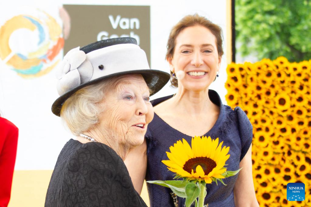 Princess Beatrix (L) of the Netherlands attends the celebration of the Van Gogh Museum's 50th anniversary on the Museum Square in Amsterdam, the Netherlands, June 2, 2023. The Van Gogh Museum hosted a series of festive activities here to commemorate its 50th anniversary and honor the legacy of Vincent van Gogh, one of the most famous and prolific Dutch artists.