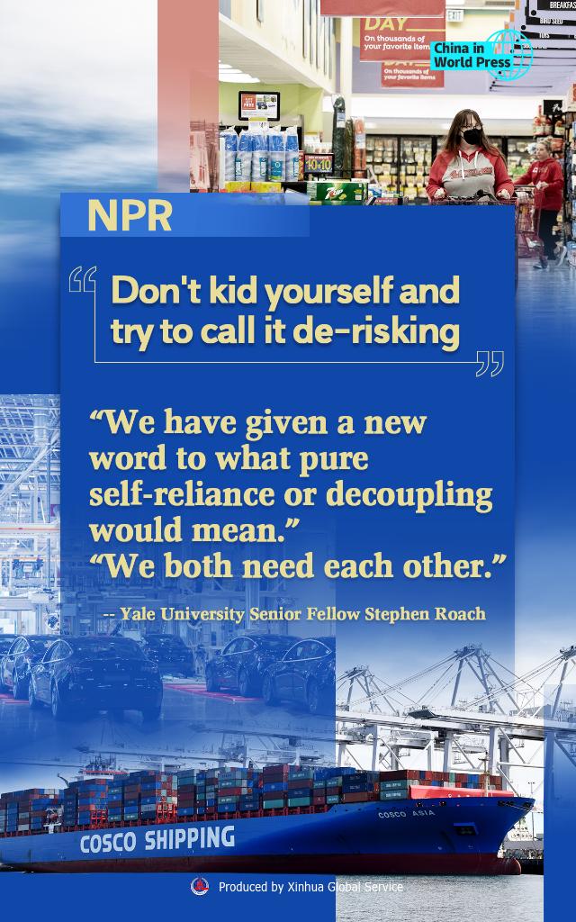 The United States is "trying to be cute" by calling "decoupling" "de-risking," the way UFO is renamed UAP, according to a Yale University senior fellow, interviewed by the NPR.