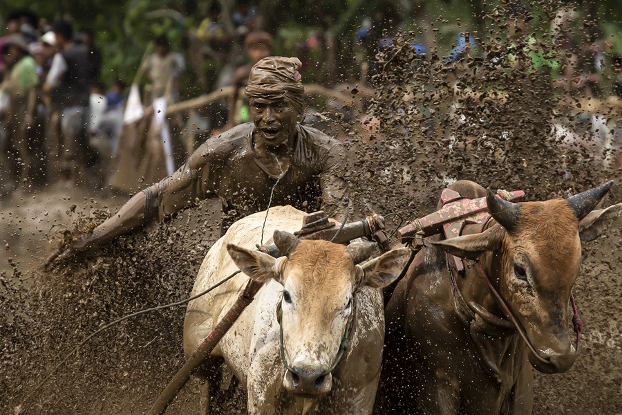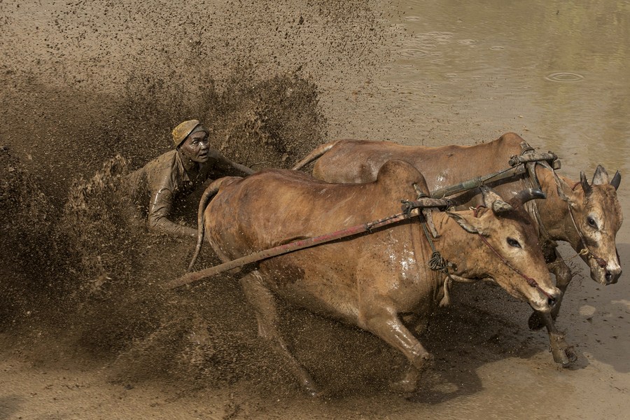 WEST SUMATRA, Indonesia, June 4 (Xinhua) -- The fast and the furious of bulls occurred in a traditional Pacu Jawi bull race in West Sumatra, Indonesia, fully showcasing the beauty of strength.