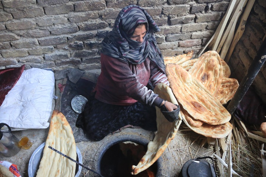 A woman bakes naan, Afghan traditional flatbread, in Kabul, Afghanistan, June 4, 2023. (Photo by Saifurahman Safi/Xinhua)■