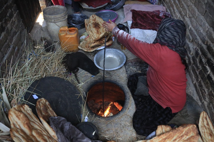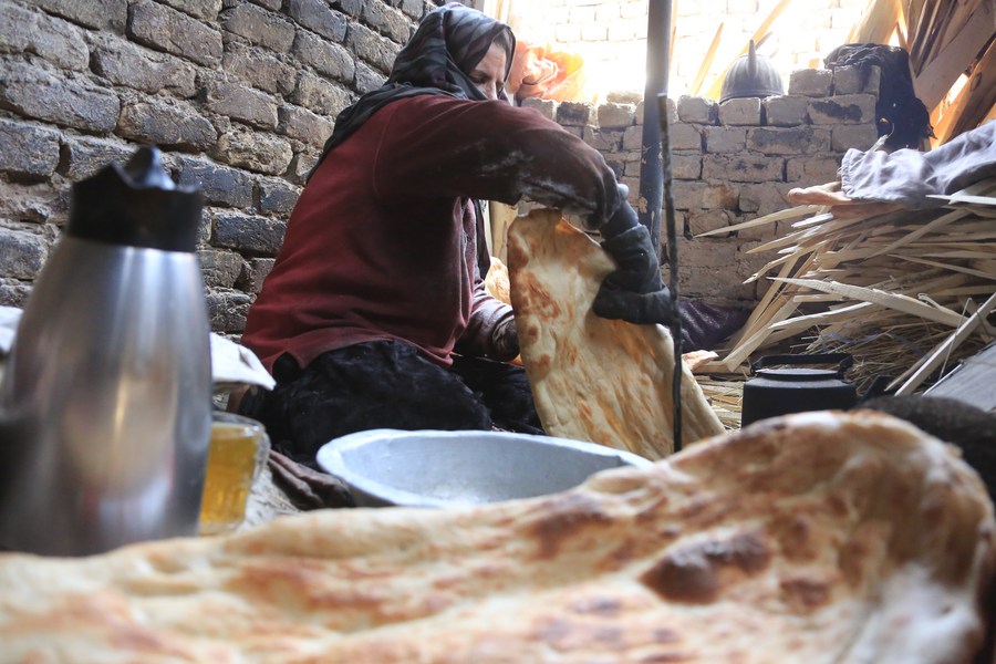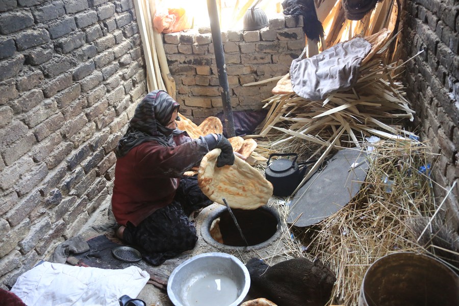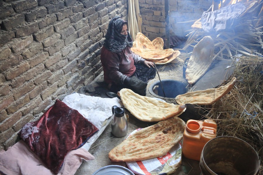 A woman bakes naan, Afghan traditional flatbread, in Kabul, Afghanistan, June 4, 2023. (Photo by Saifurahman Safi/Xinhua)