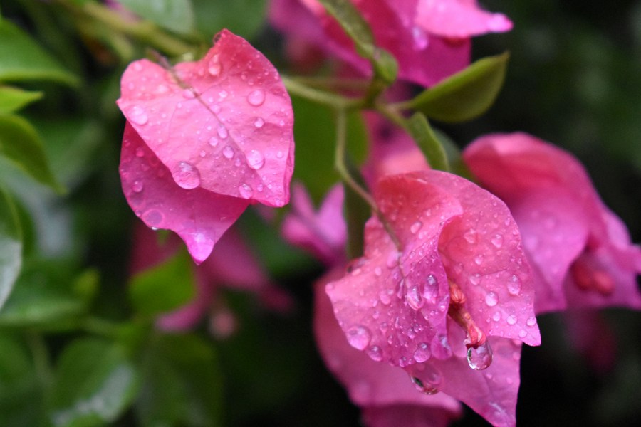 Rain drops are seen on flowers of a tree in Lahore, Pakistan on June 6, 2023. (Photo by Sajjad/Xinhua)■