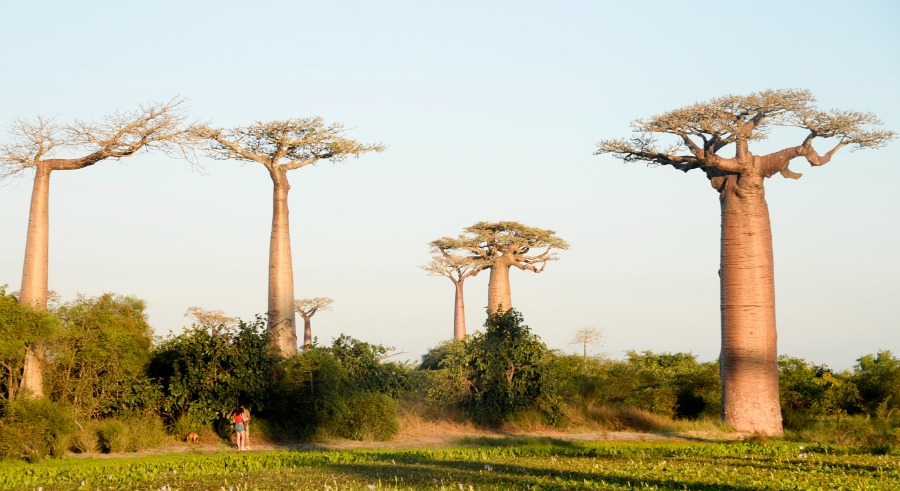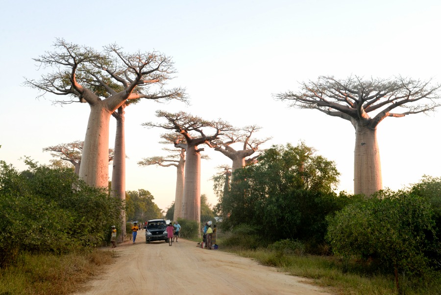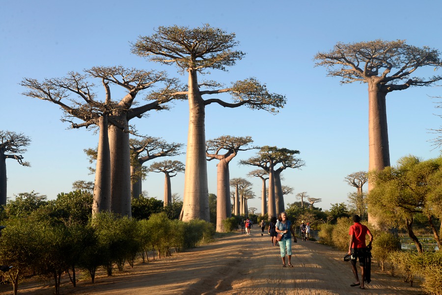 Tourists have fun at the Avenue of Baobabs on the outskirts of Morondava, western Madagascar, May 24, 2023. (Xinhua/Ling Xin)