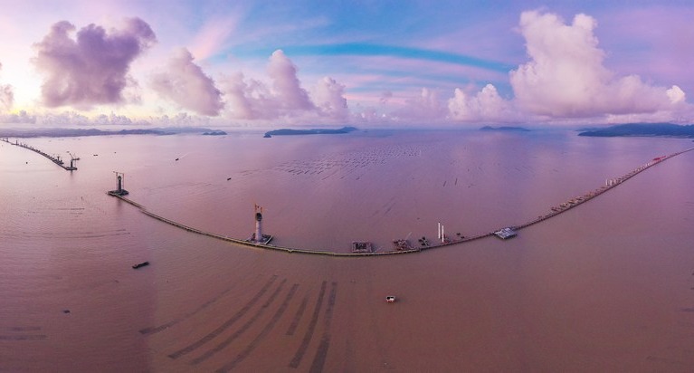 Aerial photo taken on June 28, 2022 shows the construction site of a cross-sea link in south China's Guangdong Province, which is expected to improve the connectivity in the Guangdong-Hong Kong-Macao Greater Bay Area. (Xinhua/Liu Dawei)