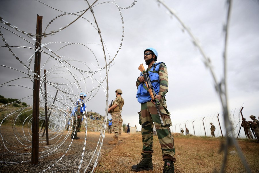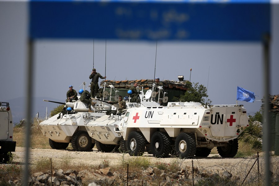 UN Interim Forces in Lebanon (UNIFIL) peacekeepers separate the Lebanese and Israeli armies in the village of Kfarchouba, Lebanon, June 9, 2023. (Photo by Ali Hashisho/Xinhua)