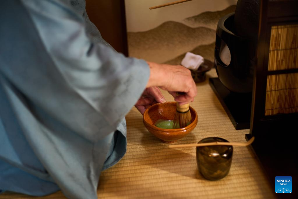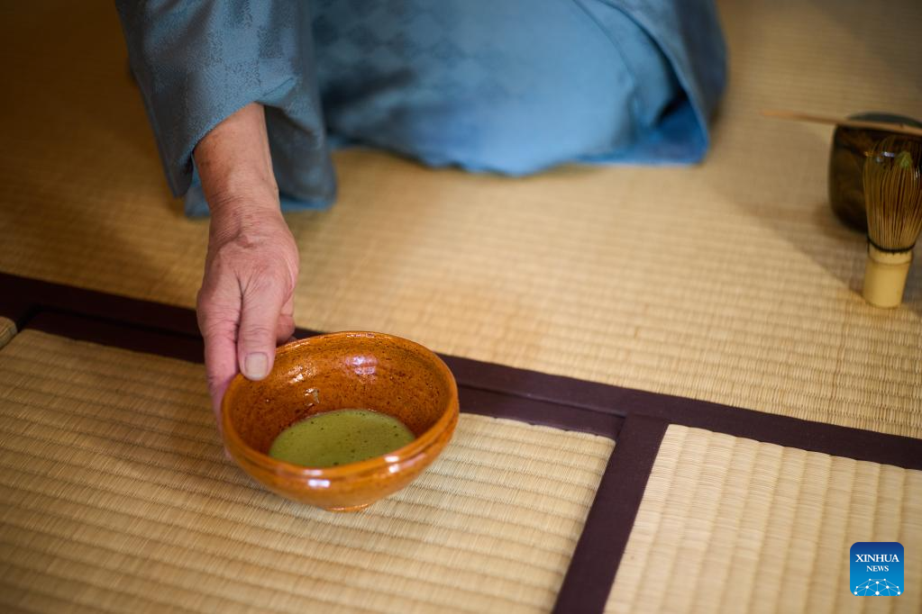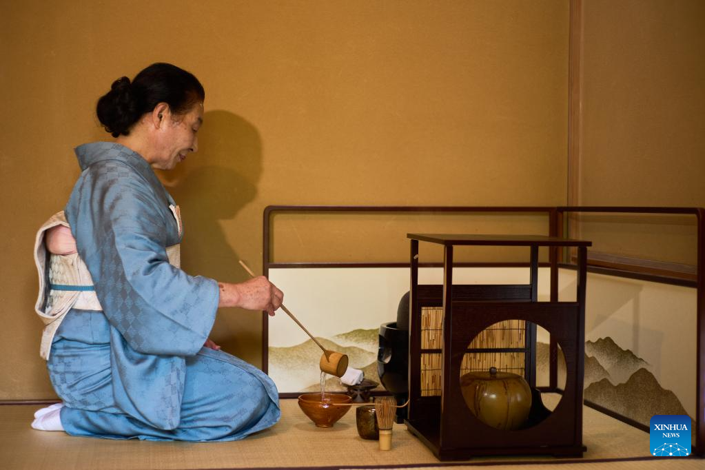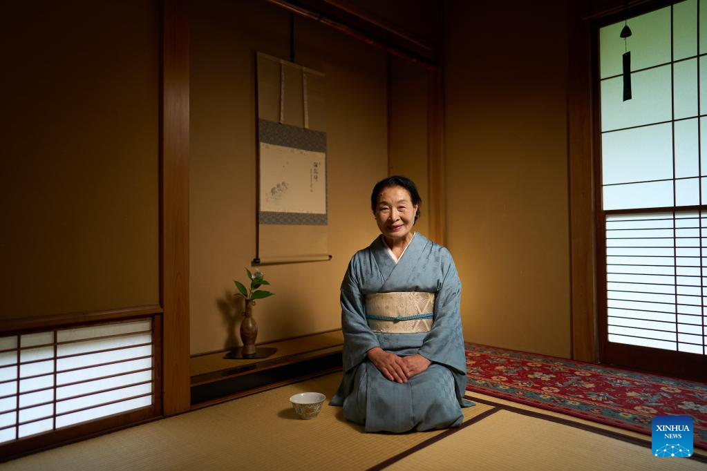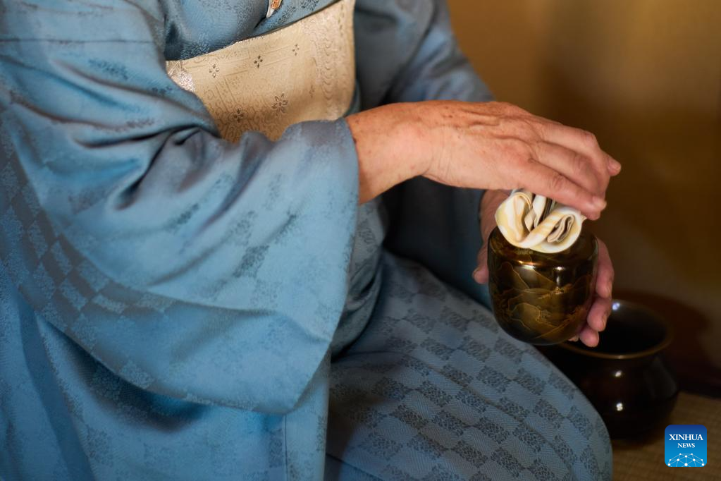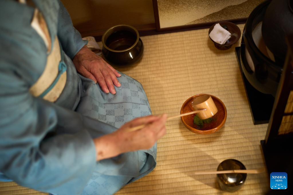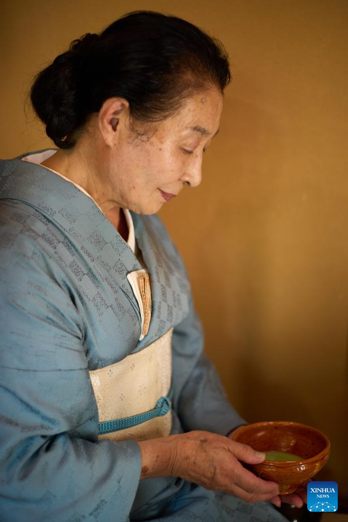 Tea Master Asami Yaeko, who is near her 80, has been in touch with tea ceremony since childhood under the influence of her grandmother, and has been involved in tea for a lifetime. She demonstrated a tea ceremony with macha at her home in Saitama on Saturday. (Xinhua/Zhang Xiaoyu)