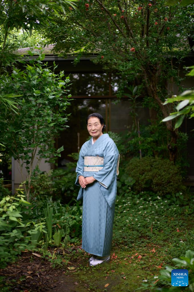 Tea Master Asami Yaeko stands at her home in Saitama, Japan, on June 10, 2023.