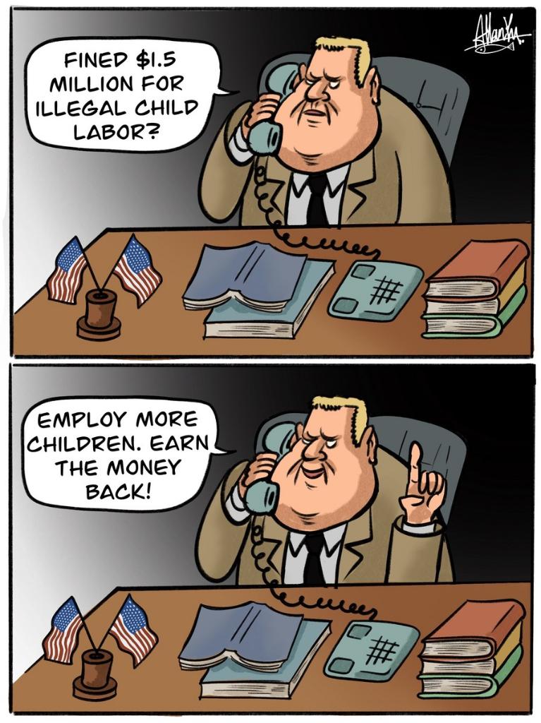 Under the act, a packaging and hygiene company with an annual revenue of over 450 million U.S. dollars was merely fined 1.5 million dollars for illegally hiring over 100 child laborers, without any criminal charge.