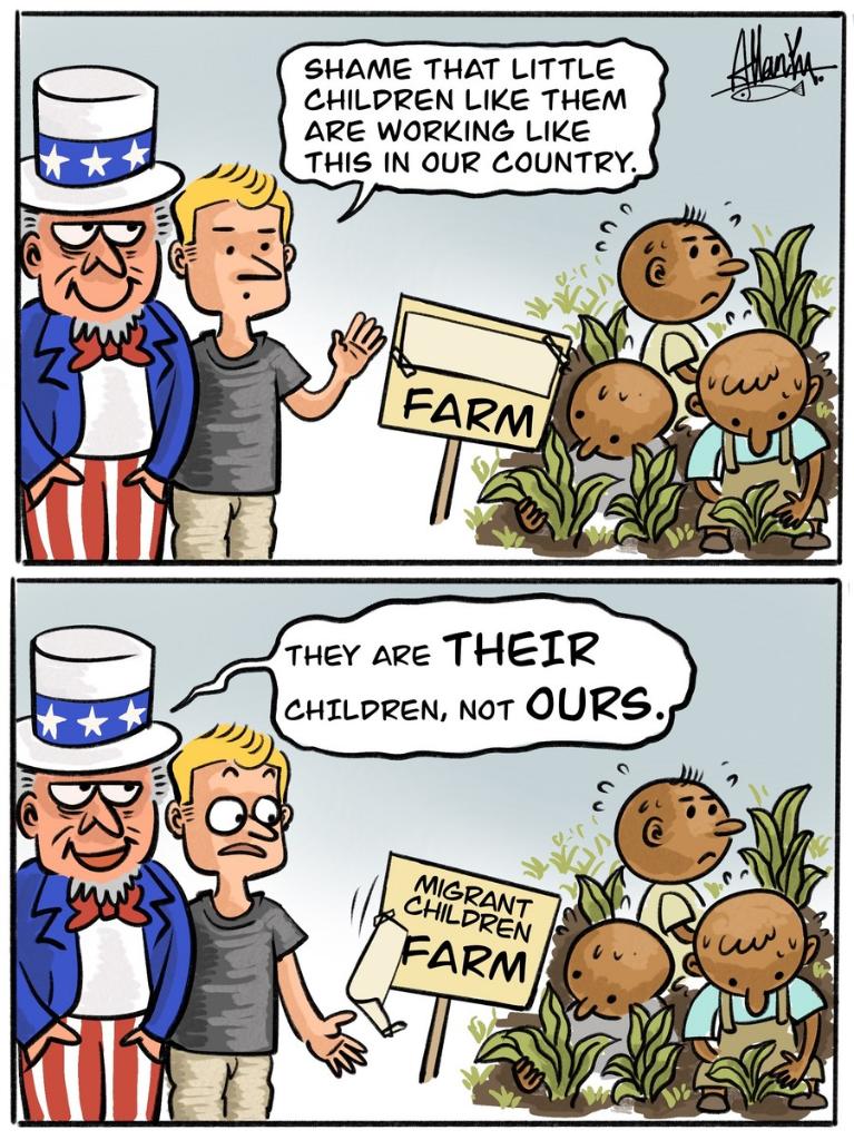 The systemic oppression against children leads to the ironic fact that in the United States, a self-proclaimed "beacon of human rights," you have to be 21 years old to buy cigarettes, but only 12 years old to work on a tobacco farm with parental consent.
