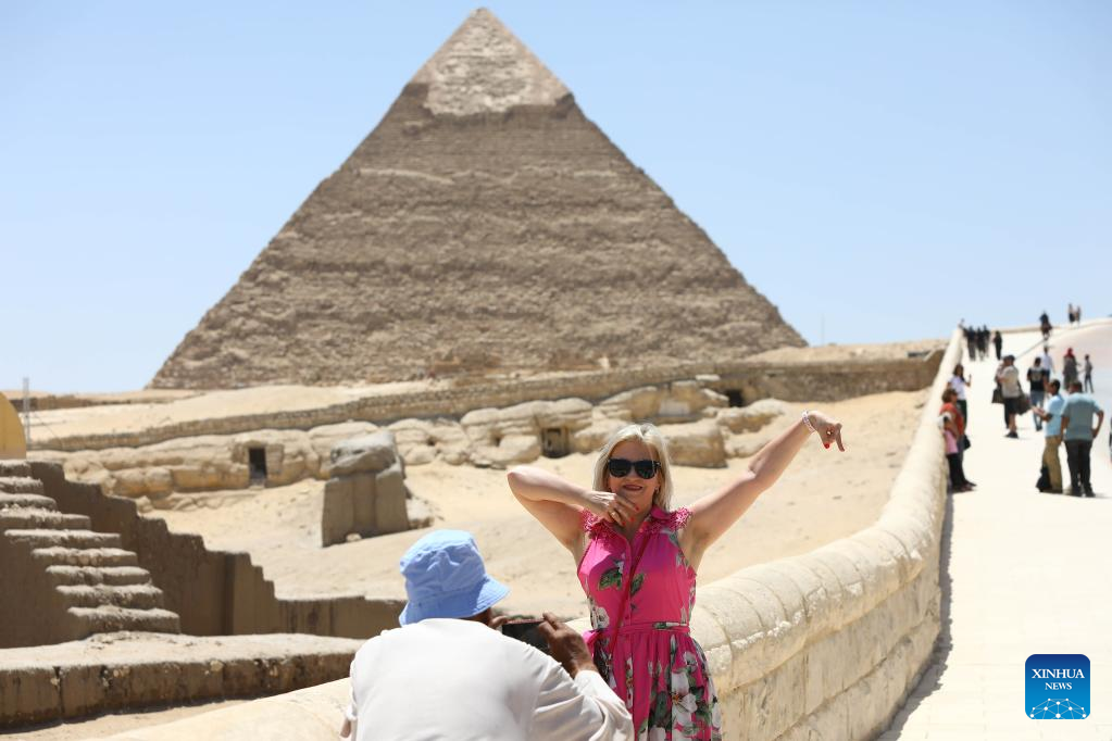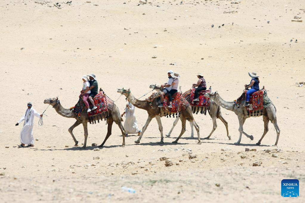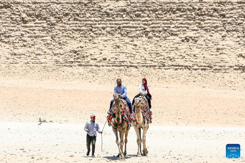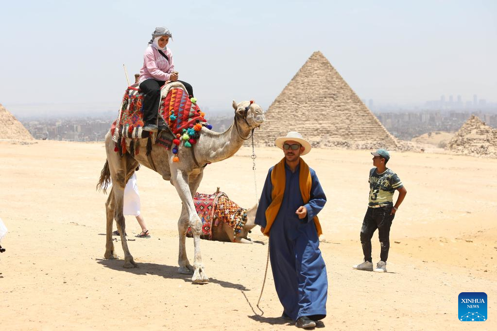 Tourists visit the Giza Pyramids in Giza, Egypt, June 12, 2023. (Xinhua/Ahmed Gomaa)