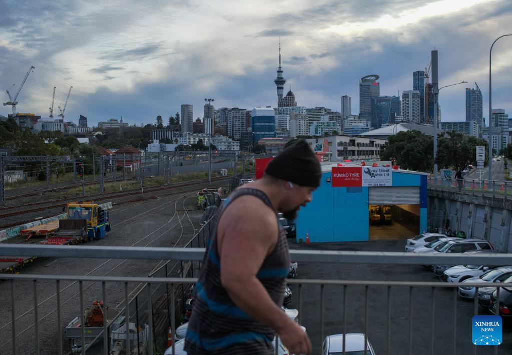A man walks on a pedestrian overpass in Auckland, New Zealand, June 15, 2023. (Photo by Zhao Gang/Xinhua)