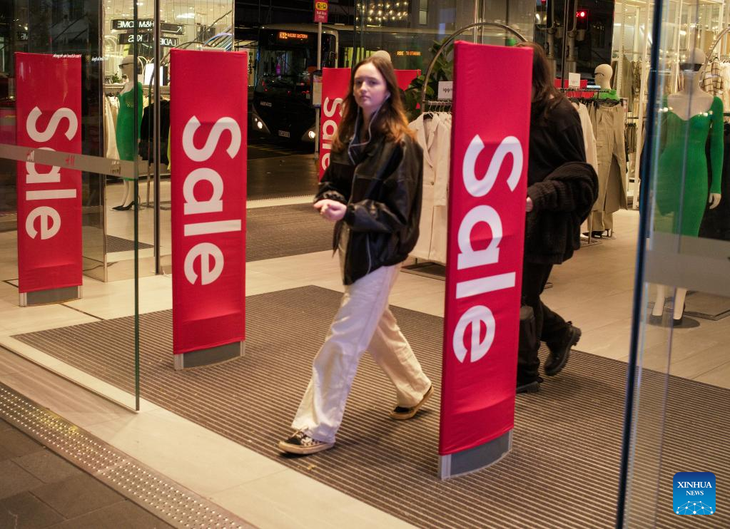 People walk out of a store in Auckland, New Zealand, June 15, 2023. (Photo by Zhao Gang/Xinhua)