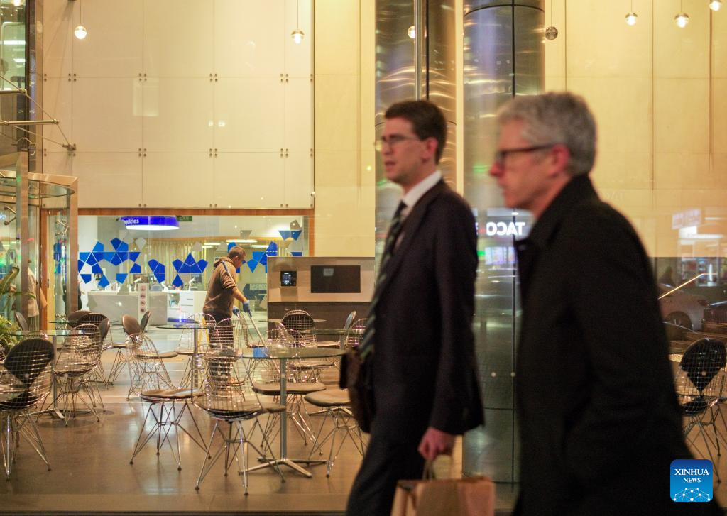 People walk past a restaurant in Auckland, New Zealand, June 15, 2023. (Photo by Zhao Gang/Xinhua)