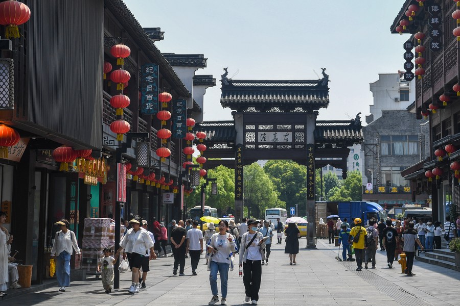 Tourists visit the Fuzi (Confucius) Temple scenic area in Nanjing, east China's Jiangsu Province, June 12, 2023. (Xinhua/Li Bo)