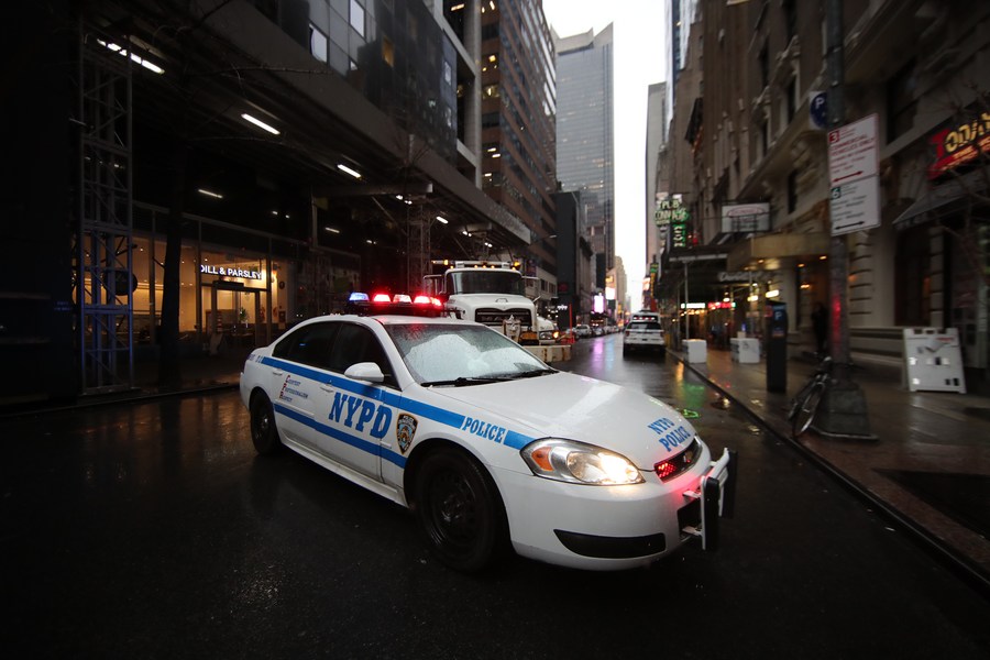 A police car is seen near Times Square in New York, the United States, on Dec. 31, 2018. (Xinhua/Wang Ying)