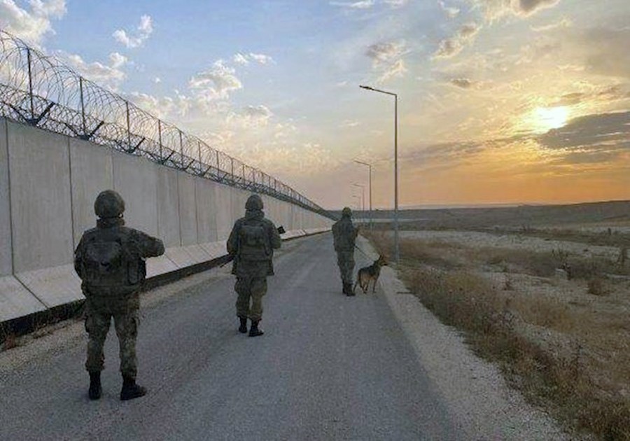 Turkish soldiers patrol the Syrian border in Kilis, Türkiye, on June 16, 2023. (Photo by Mustafa Kaya/Xinhua)