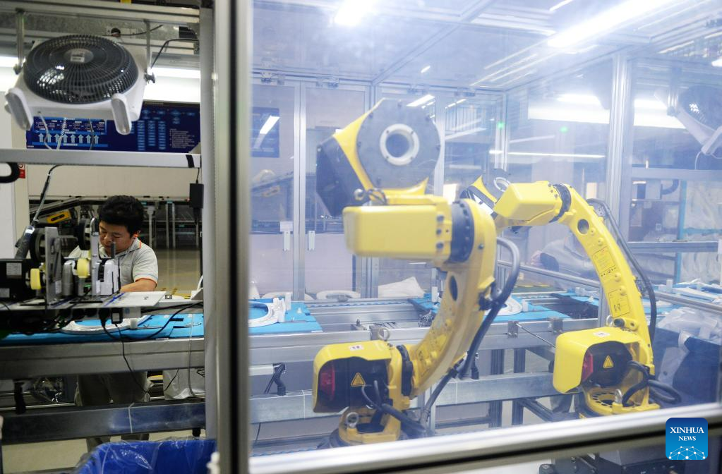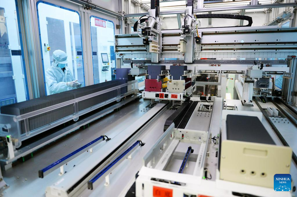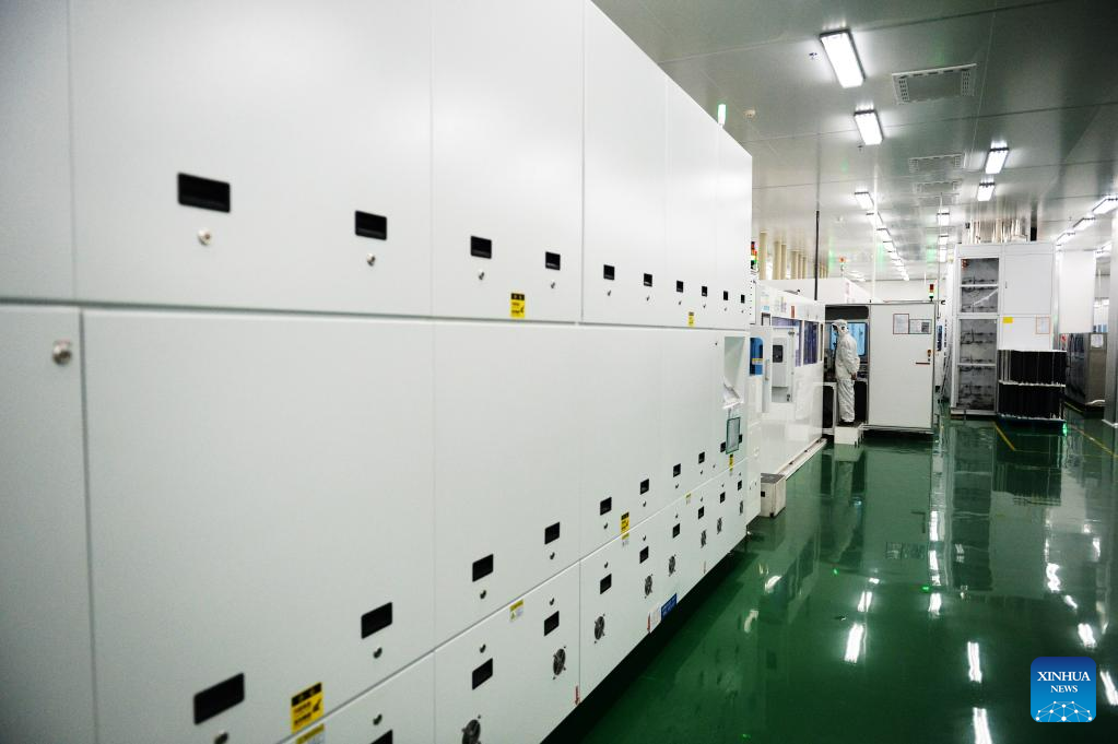 A worker walks at a solar energy battery workshop of Shine Earth New Energy Co., Ltd. in Nan'an, Quanzhou City, southeast China's Fujian Province, June 17, 2023. In recent years, Quanzhou has strengthened scientific and technological innovation, and guided enterprises to adopt new technologies and materials to drive high-quality and sustainable development. (Xinhua/Liu Yongzhen)