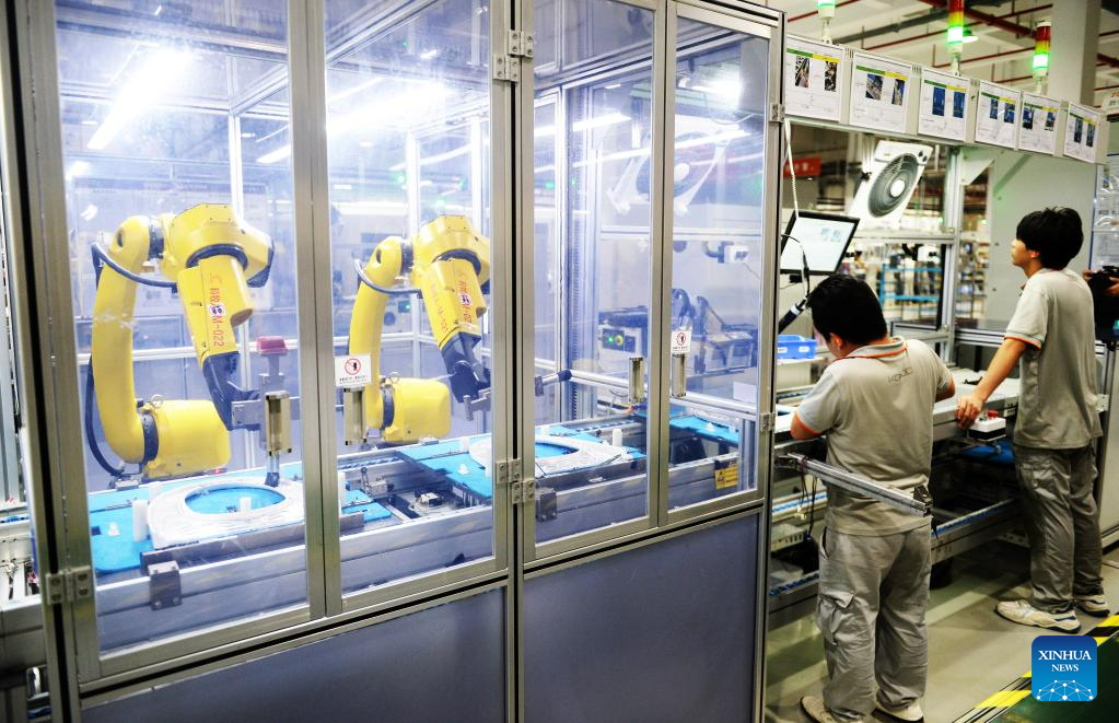 People work at a 5G intelligent workshop of a JOMOO "lighthouse factory" in Nan'an, Quanzhou City, southeast China's Fujian Province, June 17, 2023. In recent years, Quanzhou has strengthened scientific and technological innovation, and guided enterprises to adopt new technologies and materials to drive high-quality and sustainable development. (Xinhua/Liu Yongzhen)