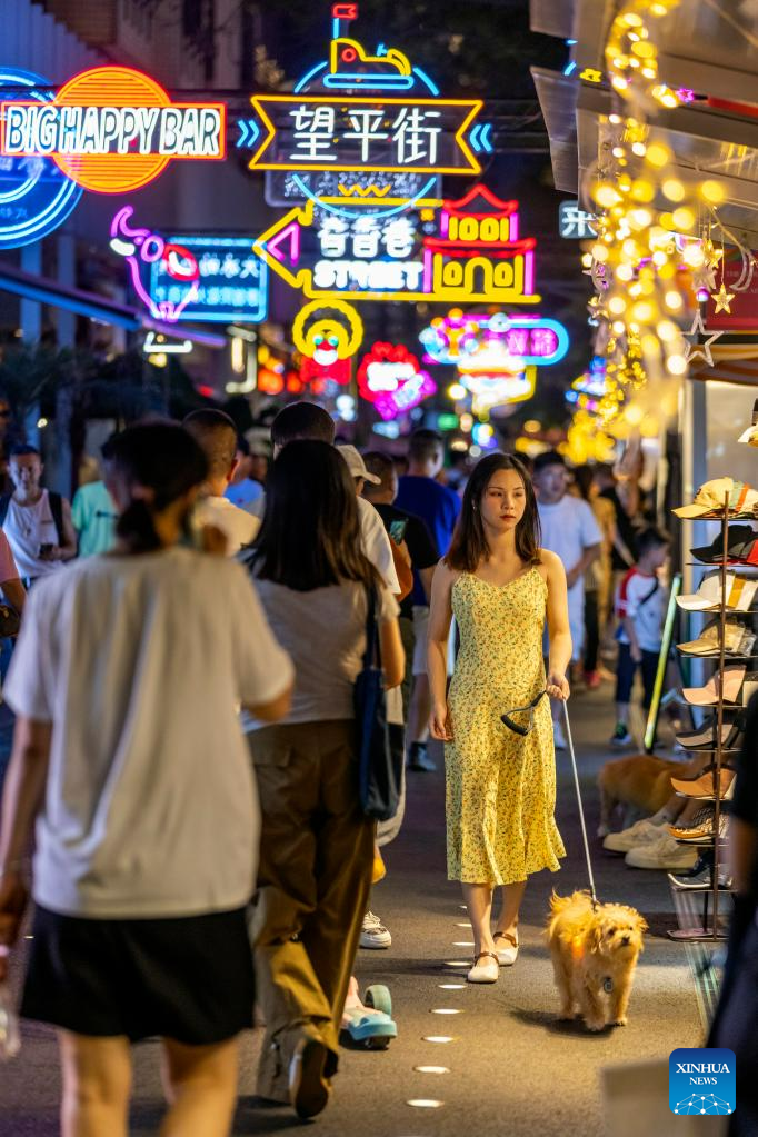 People walk in a street in Chengdu, southwest China's Sichuan Province, June 11, 2023. Chengdu, a historical city in southwest China's Sichuan Province, is home to treasured cultural and historical sites, including Sanxingdui Ruins, Jinsha Site Museum, and Dujiangyan irrigation system. In recent years, Chengdu has witnessed the rapid development of its cultural and creative industry, showcasing its vitality, creativeness and energy. (Xinhua/Shen Bohan)