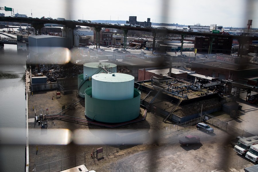 Tanks storing fuel oil are seen at the Bayside Fuel Depot in the Brooklyn borough of New York, the United States, on March 8, 2022. (Photo by Michael Nagle/Xinhua)