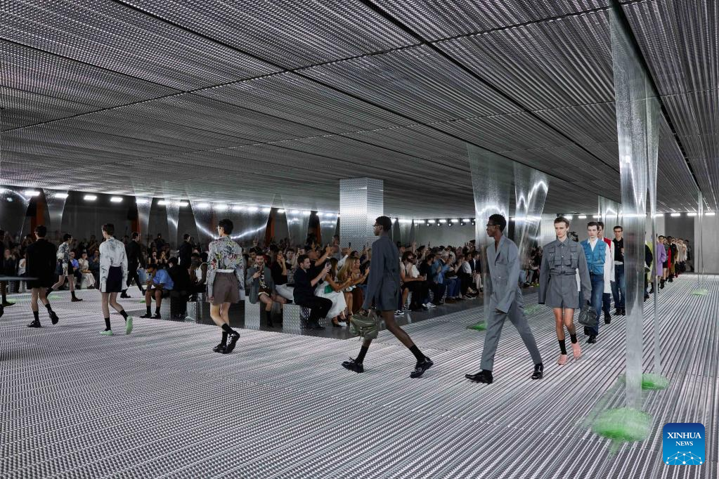 Models present creations for Prada during Milan Men's Fashion Week Spring/Summer 2024 in Milan, Italy, on June 18, 2023. (Prada/Handout via Xinhua)(For editorial use only)