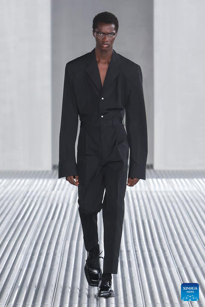 A model presents a creation for Prada during Milan Men's Fashion Week Spring/Summer 2024 in Milan, Italy, on June 18, 2023. (Prada/Handout via Xinhua)(For editorial use only)