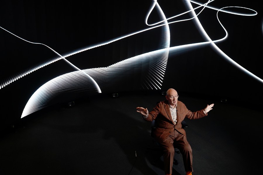 Jeffrey Shaw, chair professor of the Academy of Visual Arts of Hong Kong Baptist University, talks with Xinhua during an interview on May 11, 2023 in Hong Kong. (Xinhua/Wang Shen)