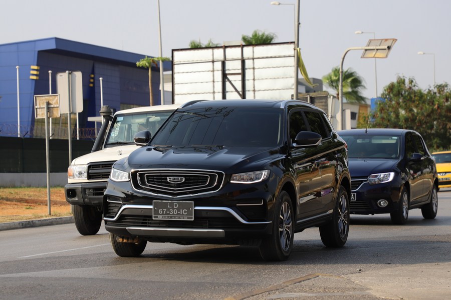This photo, taken on June 19, 2023, shows an SUV of Geely Auto, a Chinese automotive maker, cruising on a road in Luanda, Angola's capital. (Xinhua/Lyu Chengcheng)