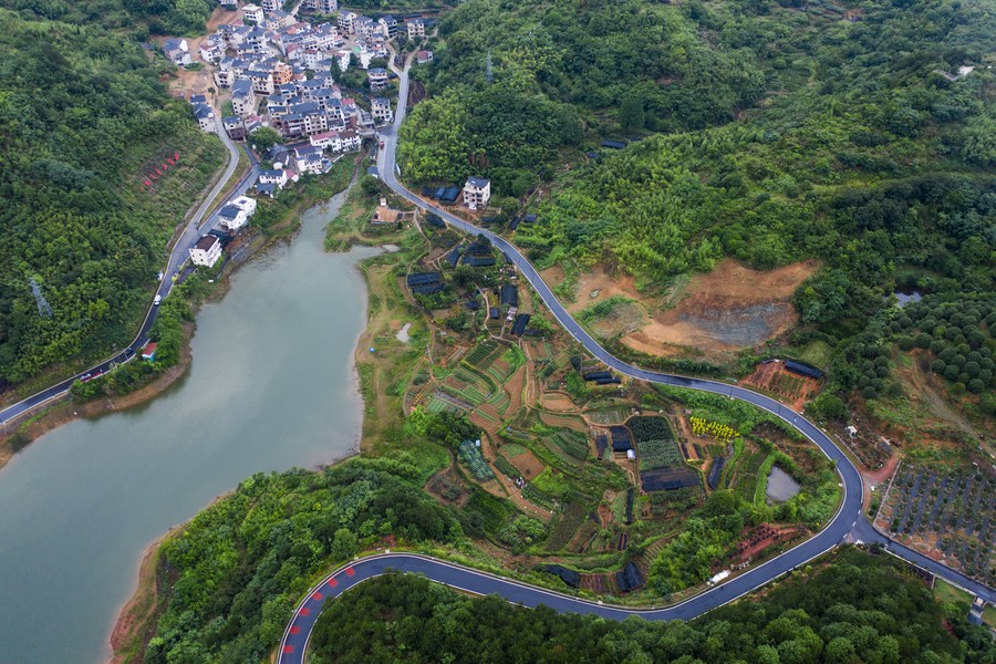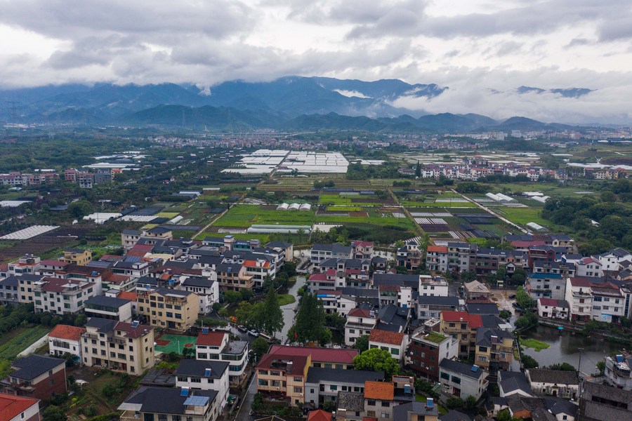 This aerial photo taken on June 20, 2023 shows a view of Dayuan Village of Chisong Town in Jindong District of Jinhua City, east China's Zhejiang Province. (Xinhua/Xu Yu)