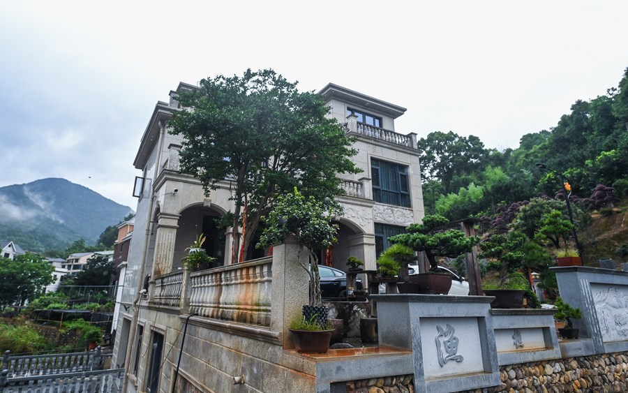 Potted plants are placed in a residence in Dayuan Village of Chisong Town in Jindong District of Jinhua City, east China's Zhejiang Province, June 20, 2023. (Xinhua/Xu Yu)
