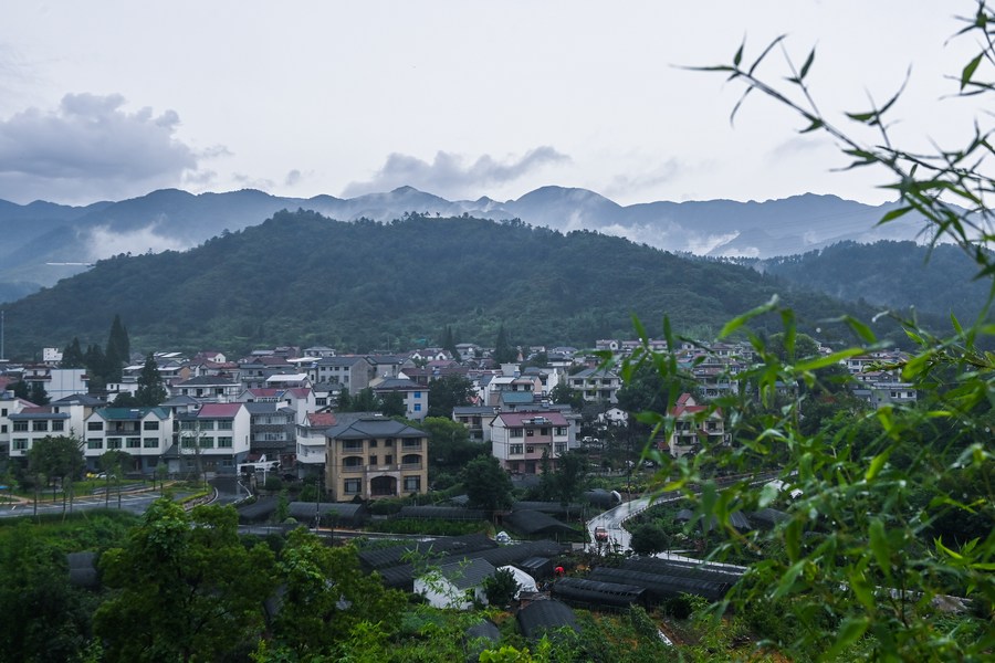 This photo taken on June 20, 2023 shows a view of Beishankou Village of Chisong Town in Jindong District of Jinhua City, east China's Zhejiang Province. (Xinhua/Xu Yu)