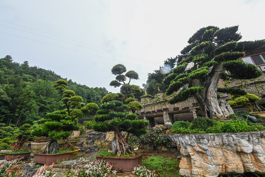 Potted plants are seen in Dayuan Village of Chisong Town in Jindong District of Jinhua City, east China's Zhejiang Province, June 20, 2023. (Xinhua/Xu Yu)