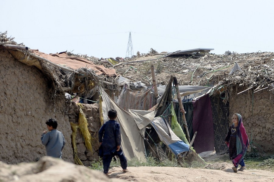 Afghan refugee children are seen at a refugee camp in Islamabad, capital of Pakistan on June 20, 2023. (Xinhua/Ahmad Kamal)
