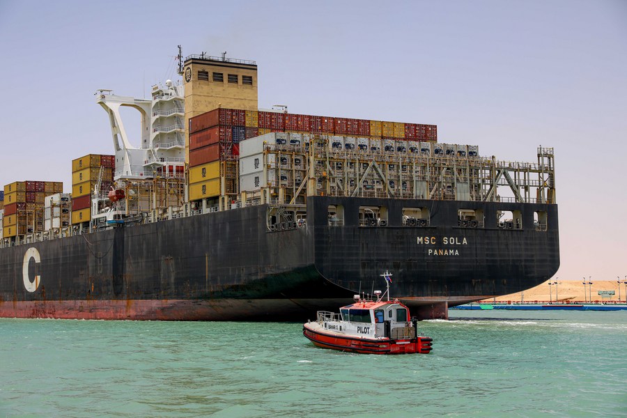 A ship sails on Suez Canal in Suez Province, Egypt, on June 21, 2023. (Xinhua/Ahmed Gomaa)