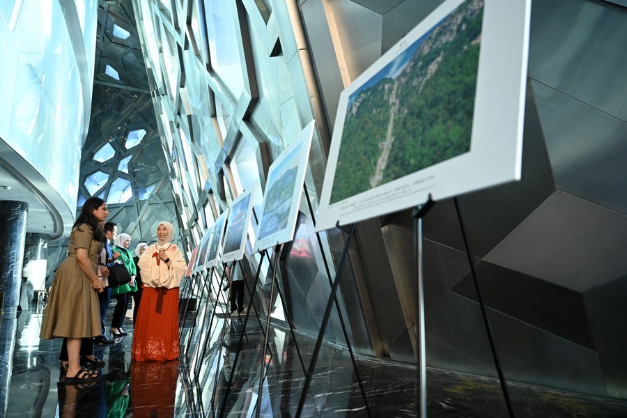 People visit a photo exhibition during the opening ceremony of China (Shandong) Kuwait Cultural and Tourism Year in Kuwait City, Kuwait, June 21, 2023. (Photo by Asad/Xinhua)■