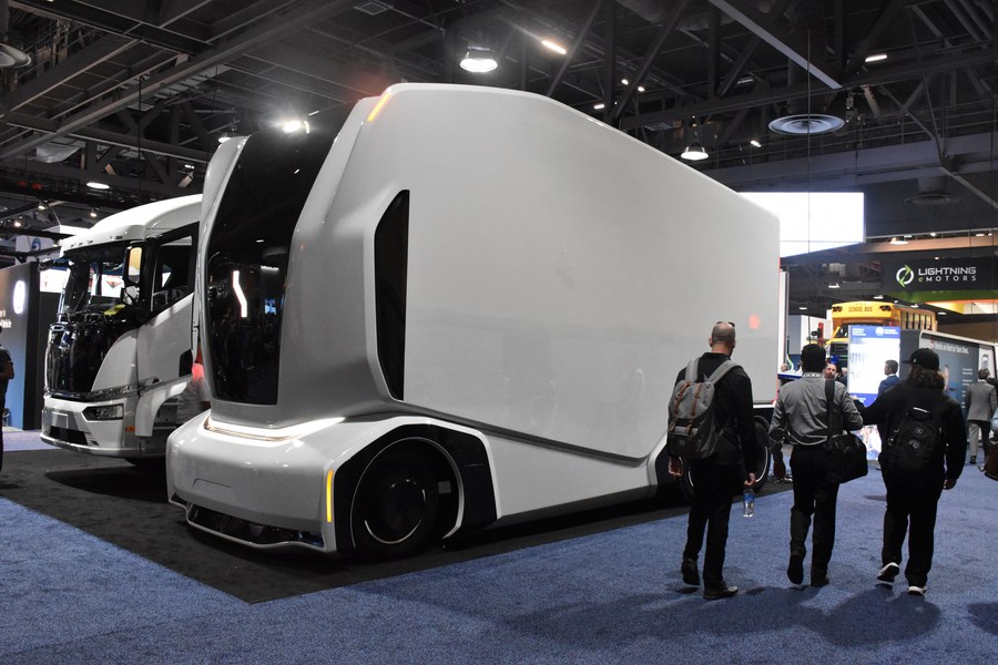 People visit 2022 Advanced Clean Transportation Expo in Long Beach, California, the United States, on May 10, 2022. (Photo by Zeng Hui/Xinhua)
