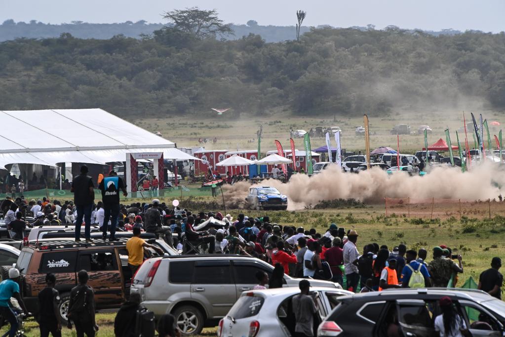 Spectators watch the race on the stage of Lake Elmenteita during the 2023 World Rally Championship (WRC) Safari Rally in Naivasha, Nakuru County, Kenya, June 24, 2023. (Xinhua/Han Xu)