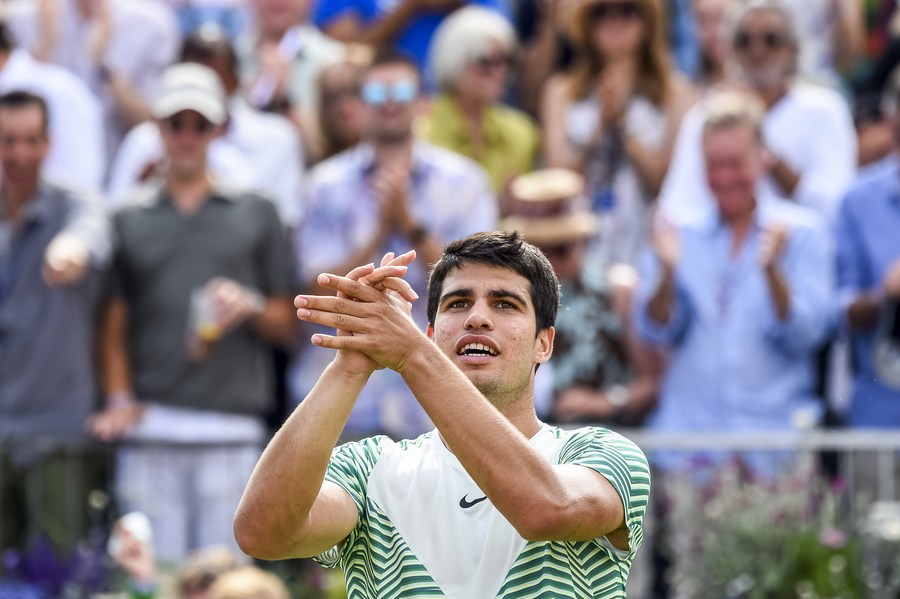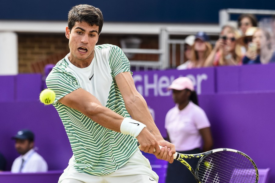 LONDON, June 24 (Xinhua) -- World No. 2 Carlos Alcaraz reached his first final on grass after beating American Sebastian Korda 6-3, 6-4 at the Queen's Club here on Saturday.